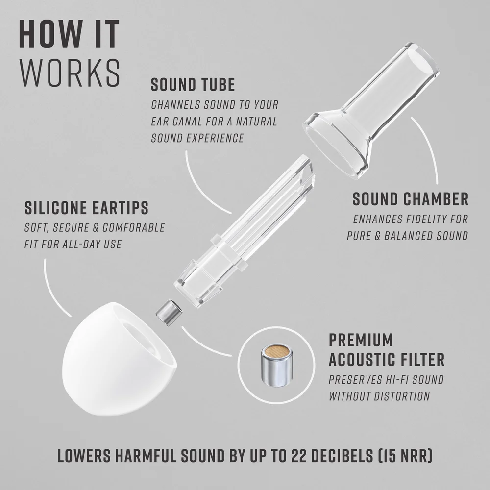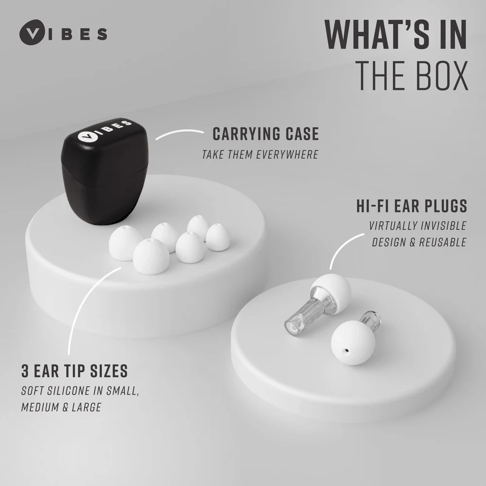 Vibes är hörselskydd designade för musik som med sitt avancerade filter sänker volymen utan att påverka upplevelsen. Levereras med ett praktiskt skyddsfodral.